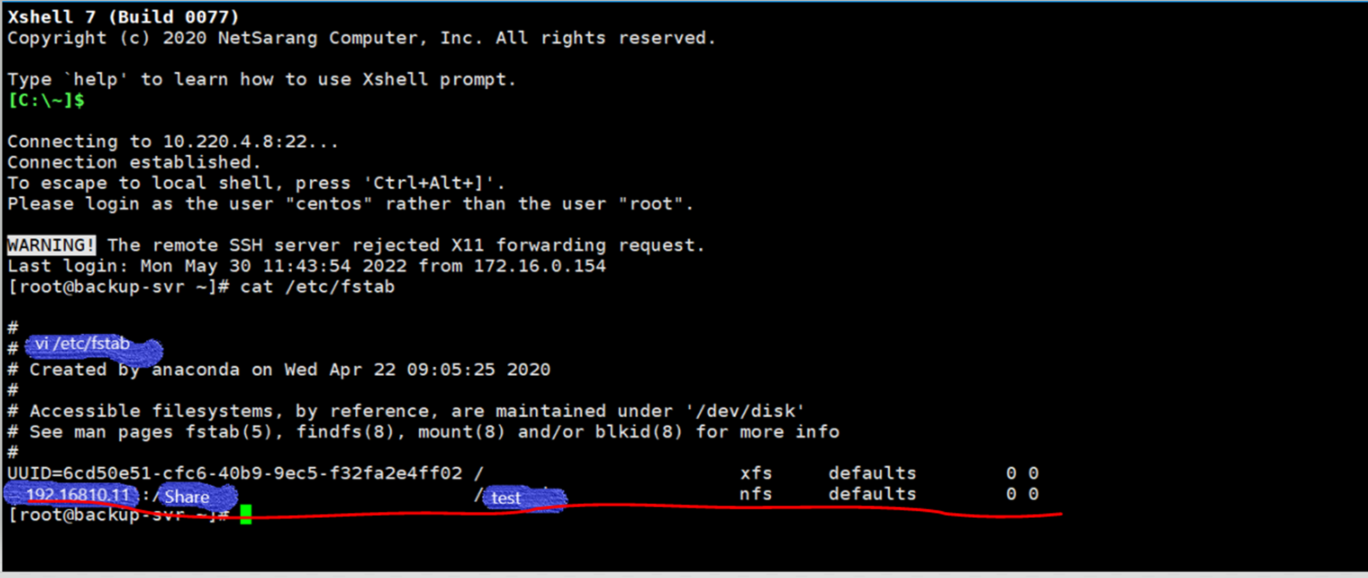 Ex) 192.168.10.11:/volume1/share /test