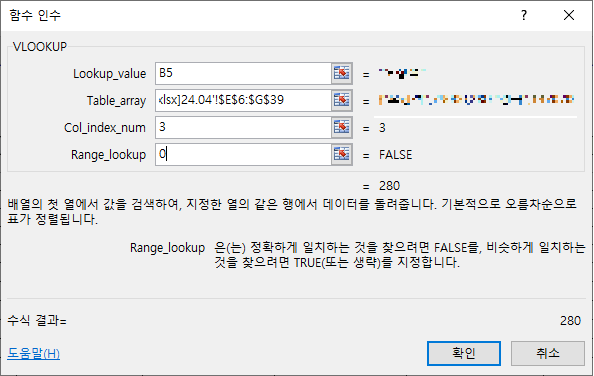 Table_array : 갖고 올 값이 있는 엑셀에서 영역을 다 가져옴(이름) - 찾을 시작 값이 같아야 함