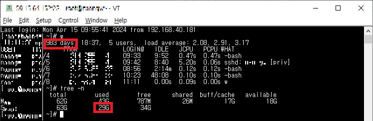 접속자 확인 : w